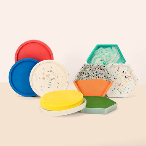 ¡Todo lo que necesitas para convertirte en un profesional de Jesmonite & Terrazzo en casa! Mantén esas manos ocupadas con este pasatiempo artesanal ecológico. ¿Quieres hacer una bandeja de baratijas o una maceta? ¡Te tenemos cubierto!