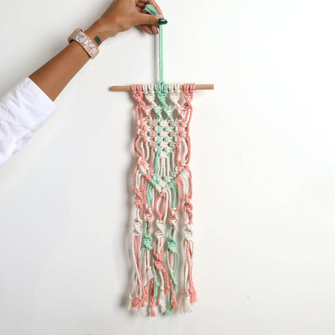 ¡No para nada! El tiempo más largo que pasarás haciendo una pieza de macramé es de aproximadamente 1 hora, la cantidad de tiempo perfecta para entrar en la zona y practicar un poco de atención plena. Los llaveros tardan unos 10 minutos, las estrellas unos 20 minutos y tanto el colgador de plantas como el colgador de pared tardan entre 45 minutos y 1 hora.